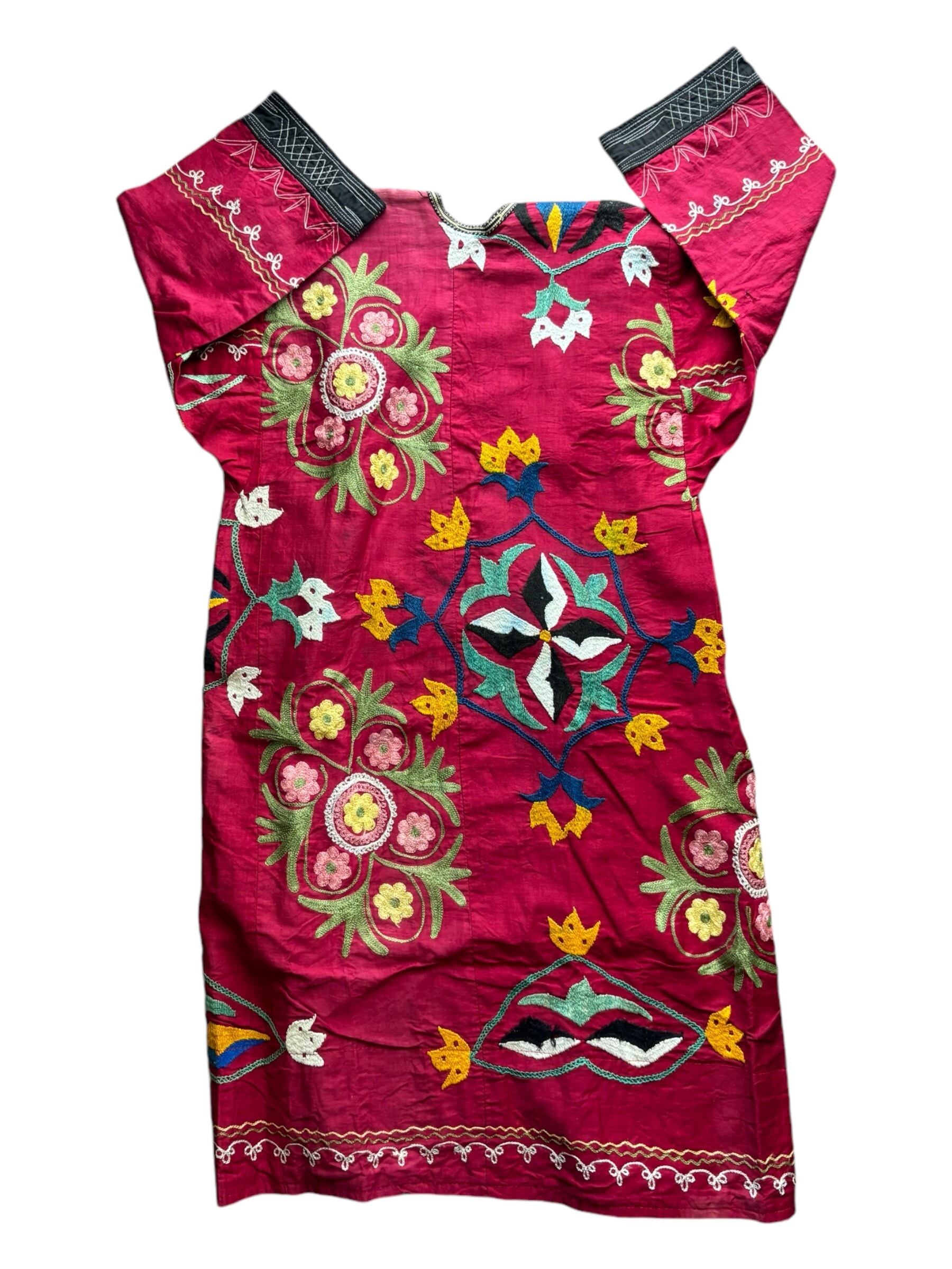 ※前開きの開閉は、ウズベキスタンの伝統的な組紐で結ぶようになっていますが(試着画像参照)上からチャイナボタンを縫い付けています。